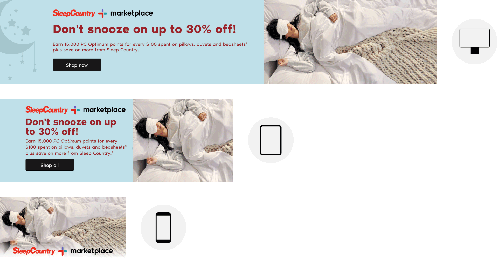 My responsibilities included designing new assets for the weekly homepage updates, such as Hero Banners, Category Tiles, and Brand Spotlights. These assets were aligned with the creative concept and emphasized the deals and highlighted brands for the week. To ensure a responsive user experience, I created multiple versions of these assets for different breakpoints. Below, you can find examples of Hero Banners along with their corresponding responsive versions.